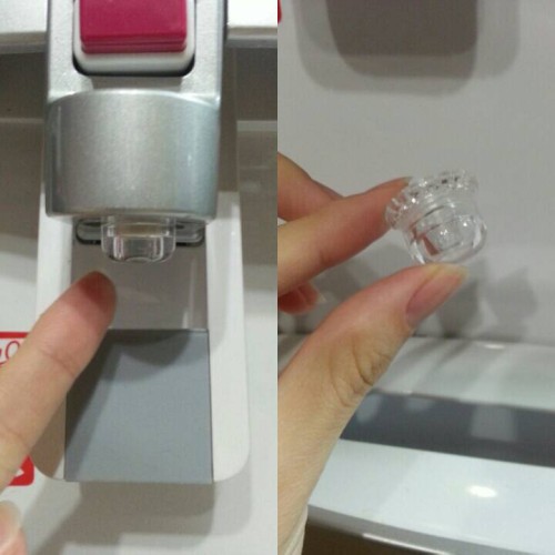 それでも、万が一のやけどが心配という方!安心してください、温水コック専用のチャイルドロックカバーがあるので、これを着けていればボタンも押せません!