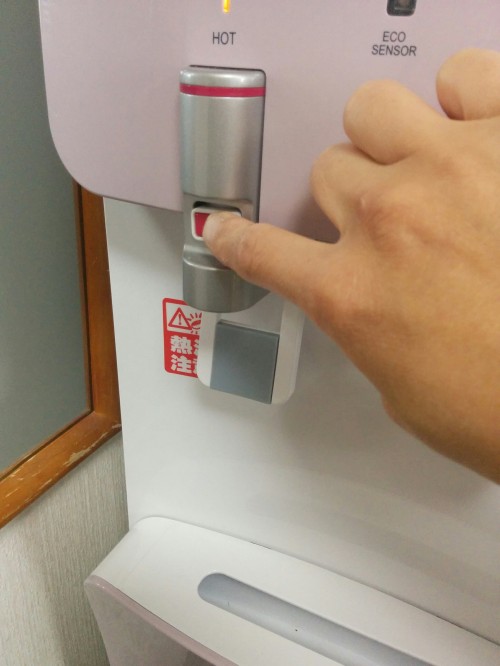 お水を出す際にボタンを押しながらレバーを押さないとお水が出ない二重ロックになっているので、小さいお子さんがいる家庭でも安心♪