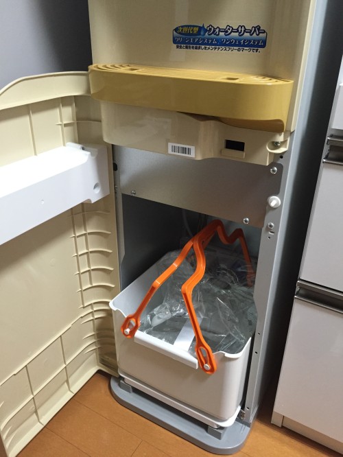 これはとても便利ですよ。足元でボトルを交換できるので、力のない女の私一人でも 簡単にボトル交換ができます。ここはオススメポイントです。