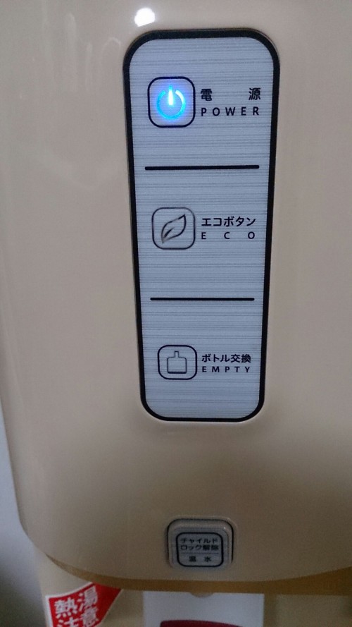 ボトルの水がなくなったら、ボトル交換ボタンが赤く点滅し教えてくれます。